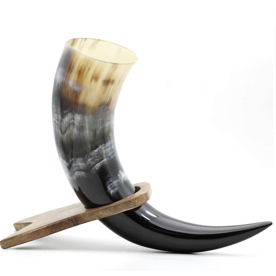 Grande corne à boire Viking avec support tasse authentique et sans danger pour les aliments pas de fuites et produit Offre Spéciale artisanal indien