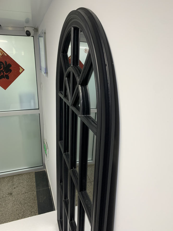 Grand miroir vintage à grille, style rustique moderne, cadre en bois en forme d'arche, miroir mural suspendu, verre noir, finition antique pour la décoration intérieure