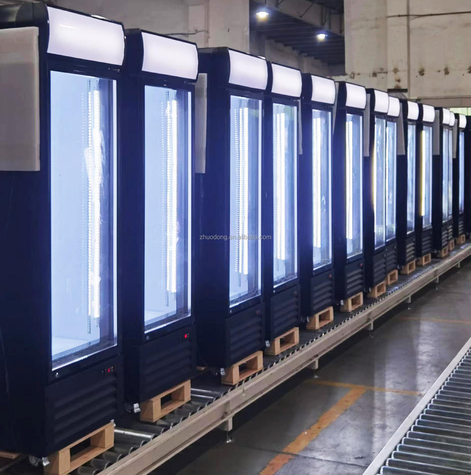 Congélateur de boissons debout de grand volume Réfrigérateur vitrine verticale avec lumière LED Refroidisseur d'affichage de climat frais à vendre