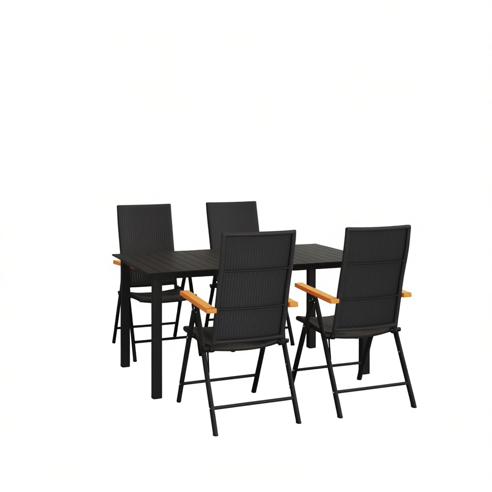 Ensemble de jardin WPC avec structure en aluminium noir, 4 places, mobilier d'extérieur au design contemporain, résistant aux intempéries