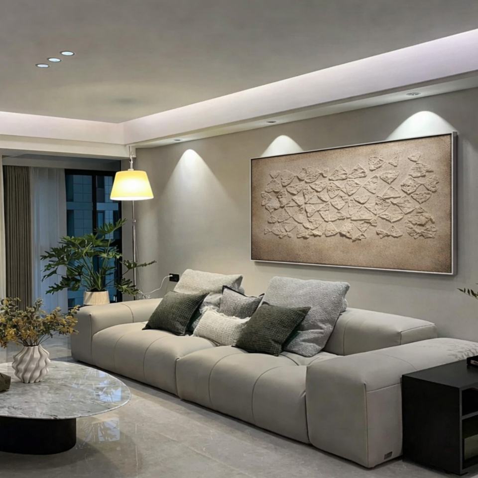 Grande décoration murale texturée 3D Wabi Sabi pour la décoration architecturale, design d'intérieur commercial, style neutre et luxueux