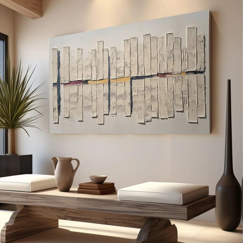 Grande peinture sur toile acrylique abstraite minimaliste Wabi Sabi, tons terreux, moderne, faite à la main, nature morte pour la maison et la galerie