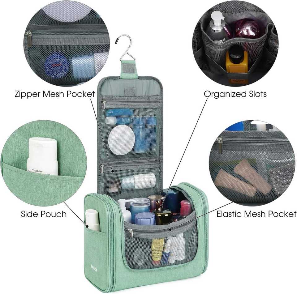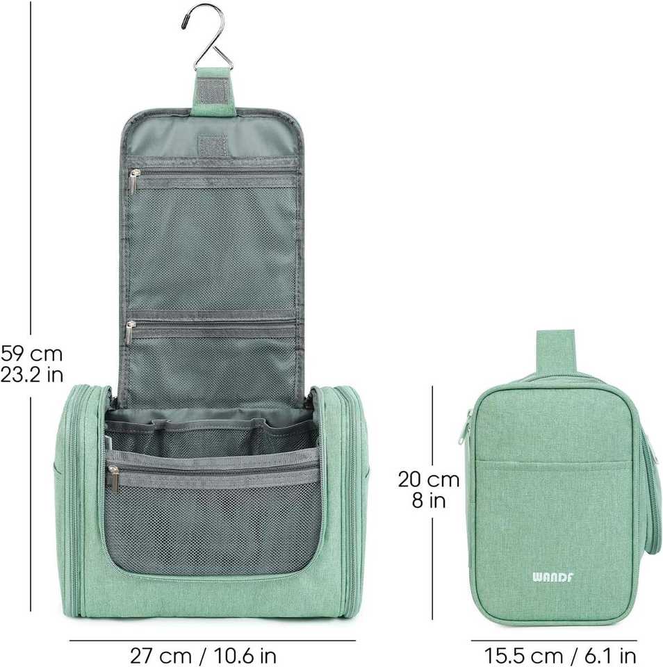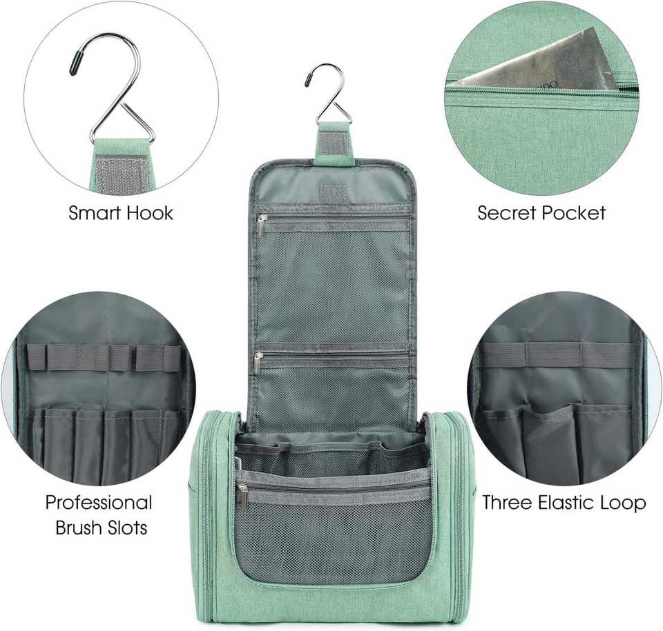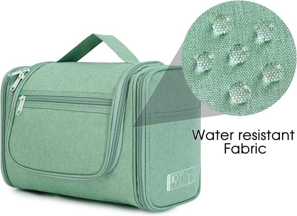Grande trousse de toilette suspendue imperméable, organiseur de maquillage de voyage pour femmes et hommes, vert, avec rangement pour ciseaux à cheveux