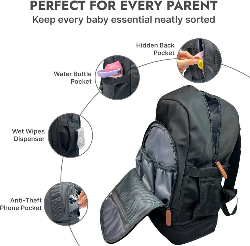 Grand sac à langer imperméable et léger, sac à dos pour bébé, sac à couches avec compartiment isotherme amovible