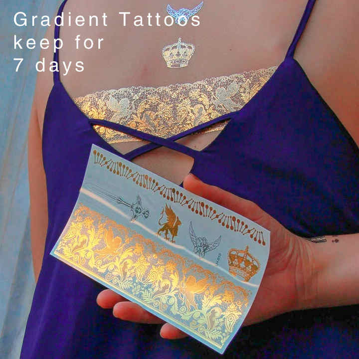Grand Tatouage Temporaire Imperméable Métallique Or Argent et Noir Body Art Plumes de Phénix