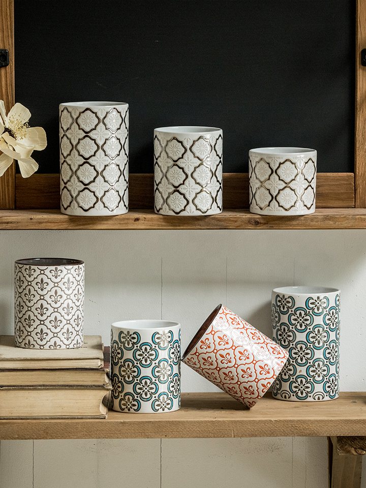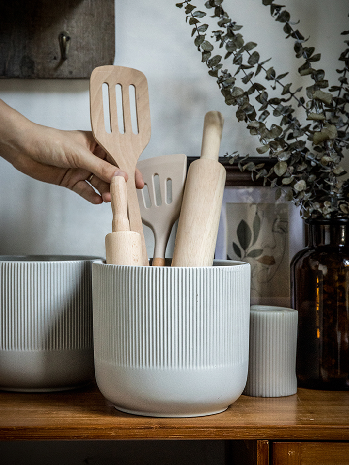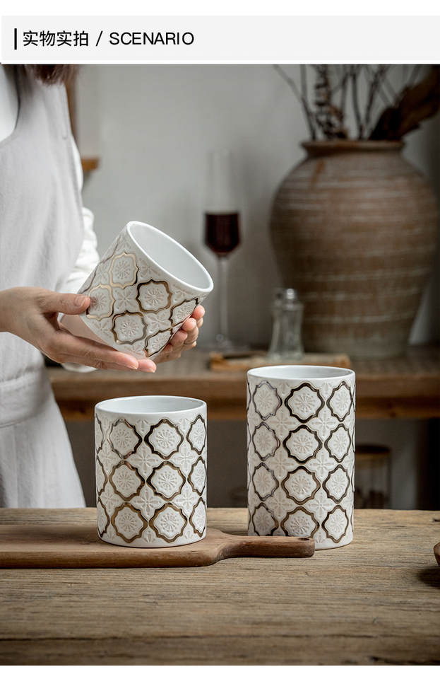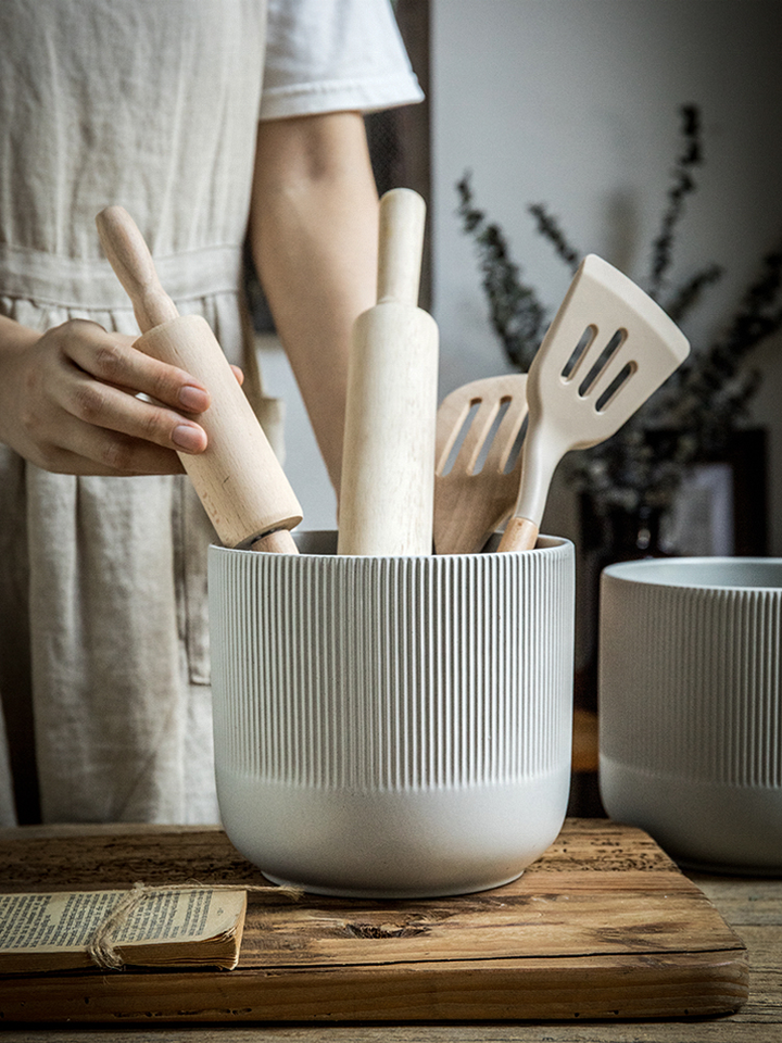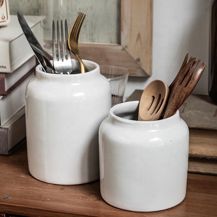 Grand pot de cache de rangement en céramique blanche, réservoir de stockage en céramique pour ustensiles de cuisine, pot de garage pour vaisselle pour hôtel à la maison