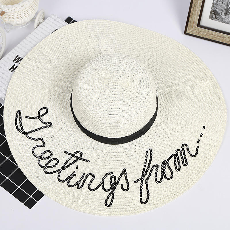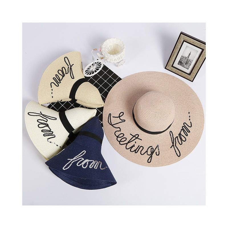 Grand large bord brodé plage personnalisé seau chapeau été pare-soleil chapeau extérieur soleil disquette papier chapeau de paille pour les femmes