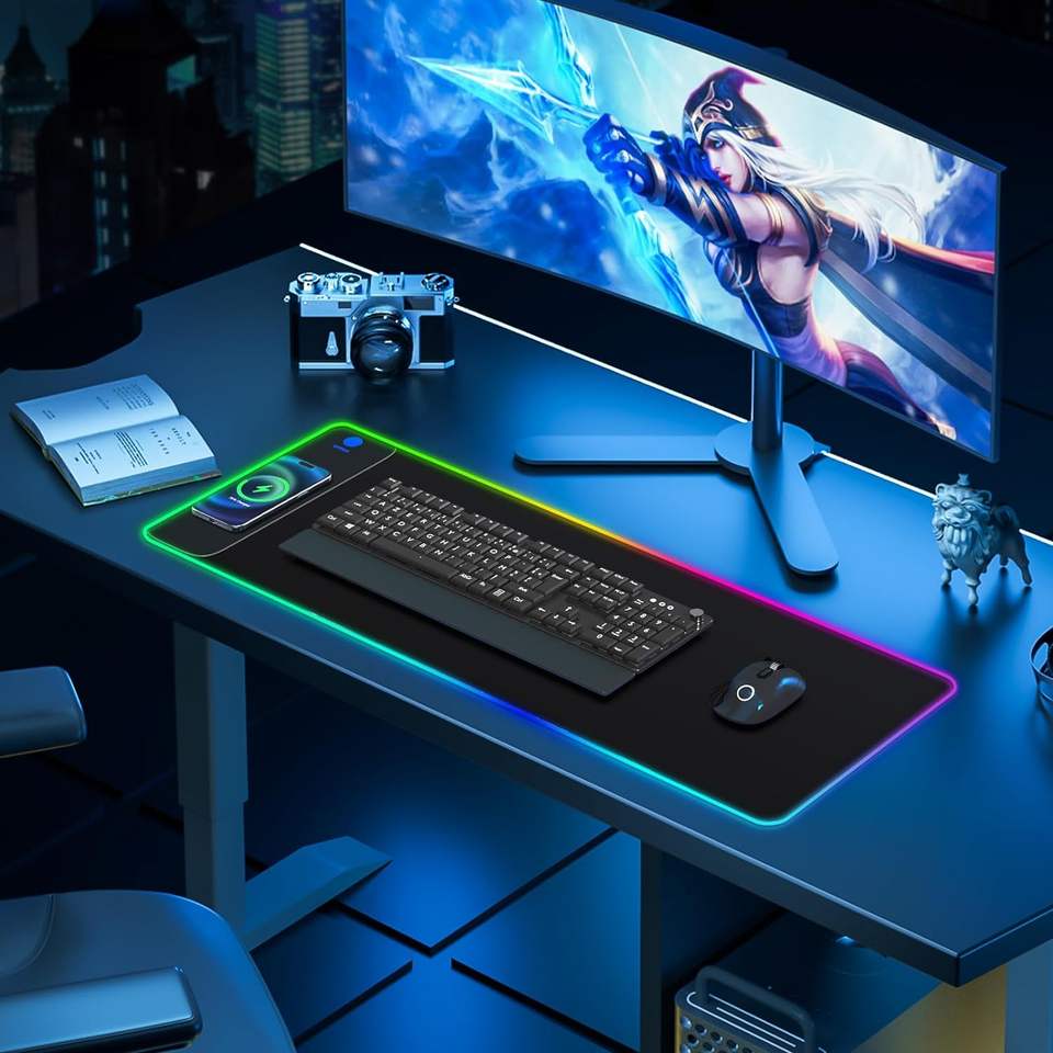Grand tapis de souris LED blanc sans fil imprimé personnalisé tapis de bureau d'ordinateur pour cadeaux tissu Oem tapis de souris de jeu antidérapant