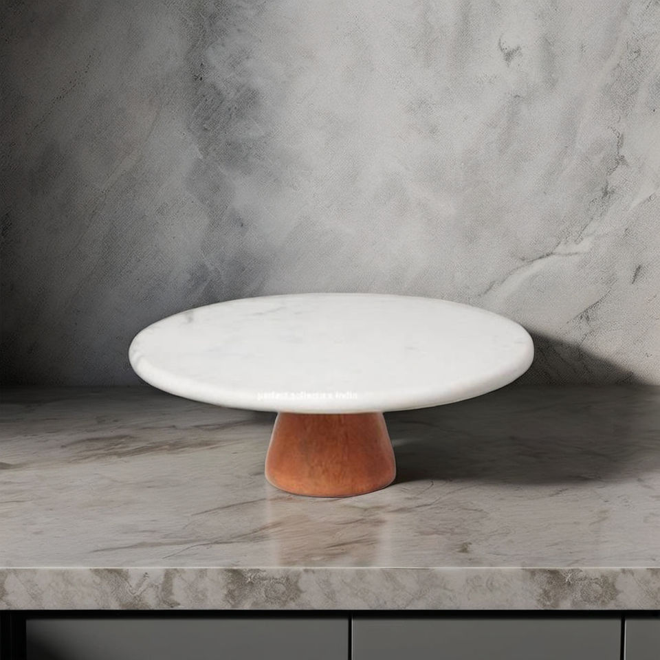 Multi-Sized Metal Cake Stand with Large and Small round Marble White for Baking and Display in Home Kitchen