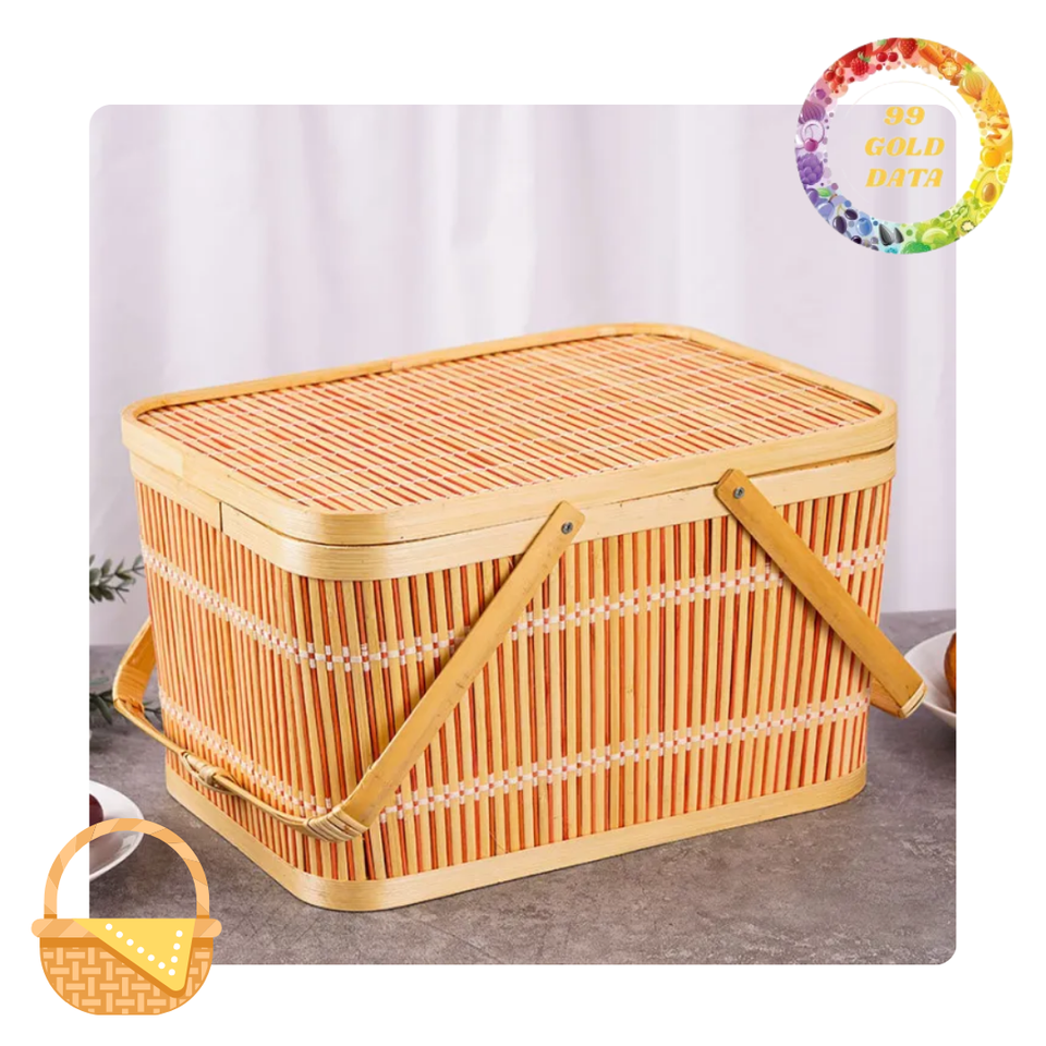 Grand panier de pique-nique en bambou avec poignée | Pour la préparation du pique-nique et le cadeau | Grande et petite taille disponibles
