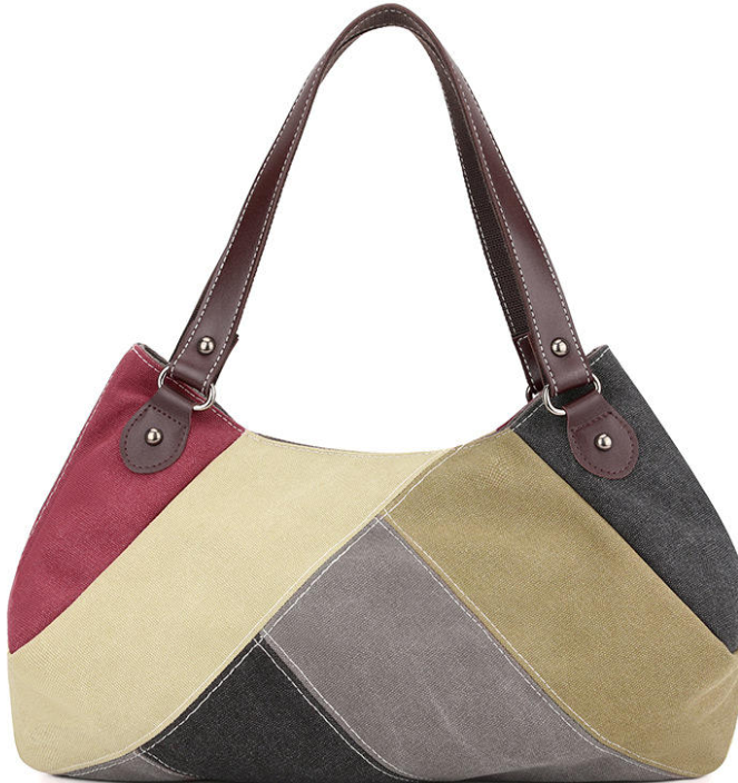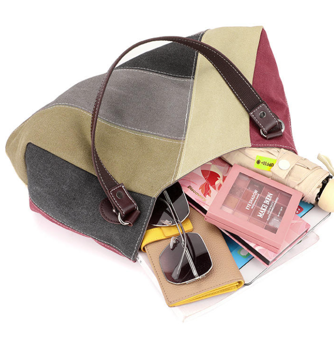 Large capacity women's canvas tote bag with spliced contrasting zipper canvas shoulder bag