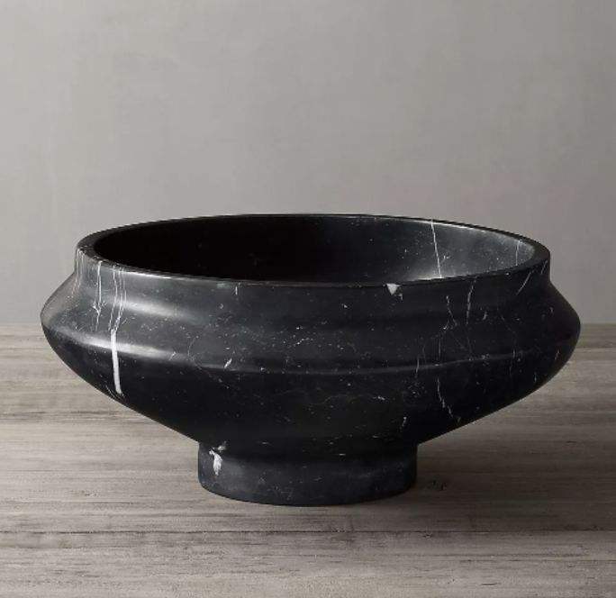 Grand bol de service en marbre élégant avec une texture polie de haute qualité pour servir des salades de fruits et des plats de signature