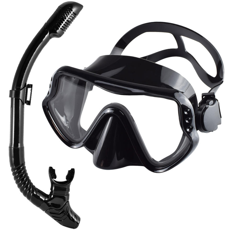 Masques de plongée en apnée à grand cadre Lunettes de plongée en apnée Tube respiratoire - Masques faciaux en silicone anti-buée étanches Verre trempé de 4,0 mm