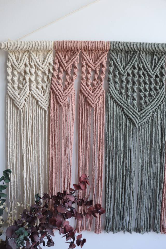 Grand rame naturel suspendu, tête de lit géométrique, tapisserie murale Boho, art mural multicolore