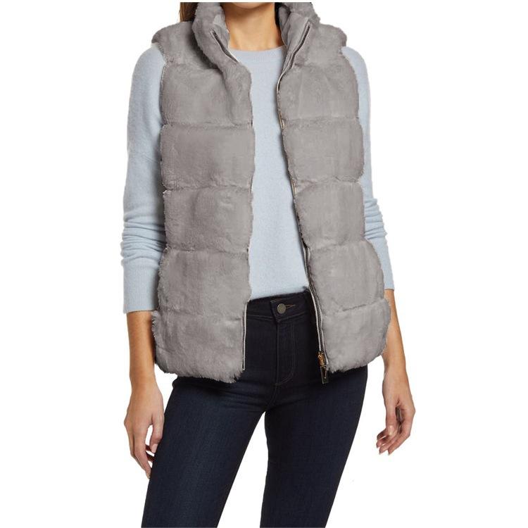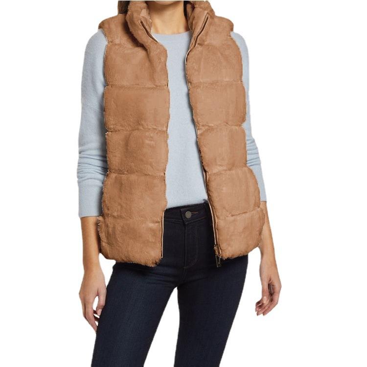 Veste en peluche à col montant de couleur pure pour femmes européennes et américaines d'automne et d'hiver, gilet en fausse fourrure, cardigan ouvert