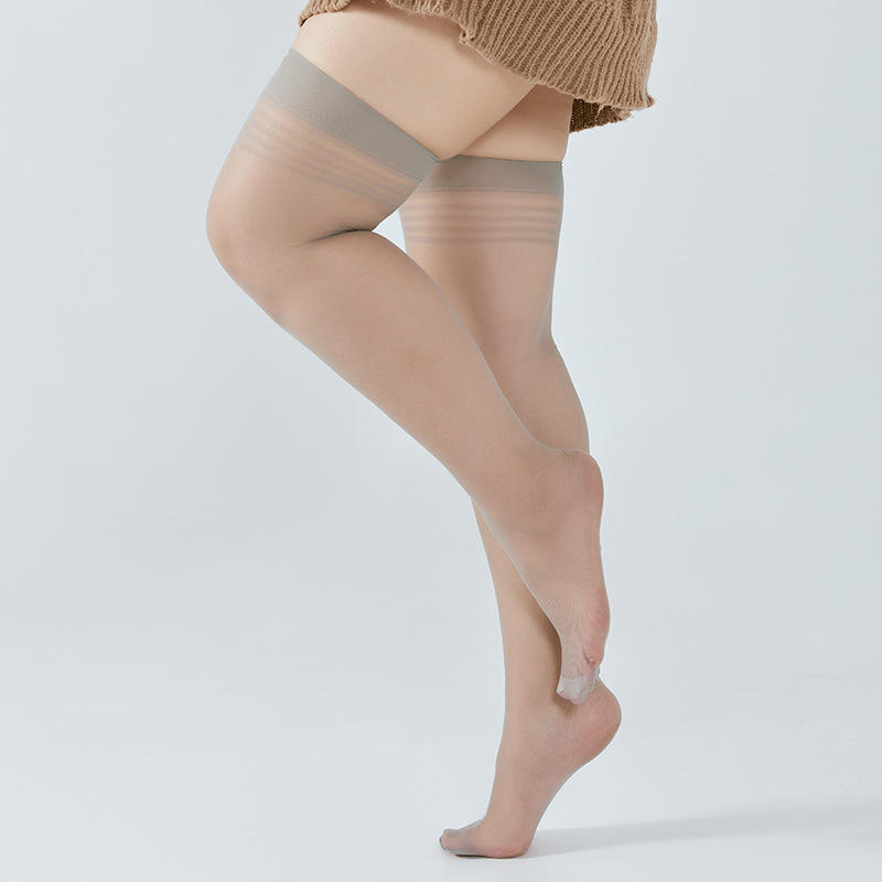 Bas au-dessus du genou rayé anti-course de couleur chair de grande taille pour femmes Style d'été ultra-mince demi-longueur avec antidérapant
