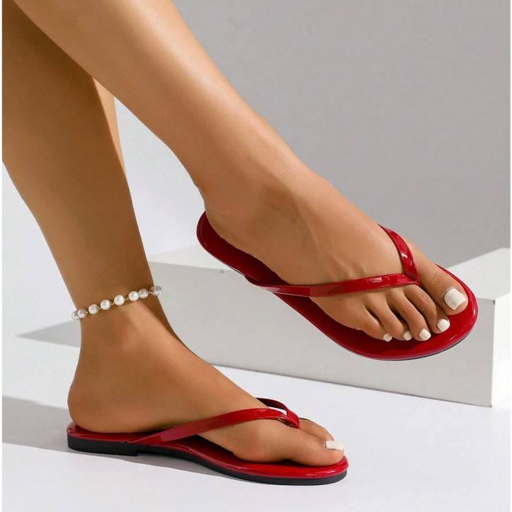 Sandales d'été plates de grande taille pour femmes, couleur unie, polyvalentes et tendance, tongs de plage, chaussures à talon bas.