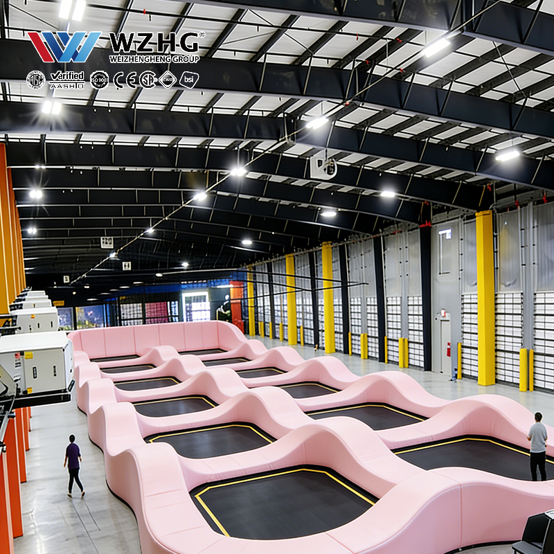 Structure en acier à grande portée pour parc de trampolines, plafond haut, fournisseur leader fiable, robuste, résistant aux intempéries, durable, durée de vie de 50 ans