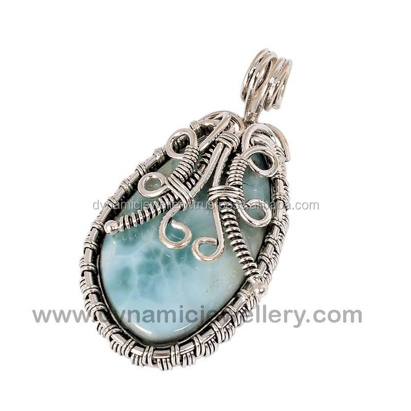 Larimar Pendentif en argent sterling 925 Fil enroulé Cadeau élégant en argent sterling avec numéro Construction multi-matériaux