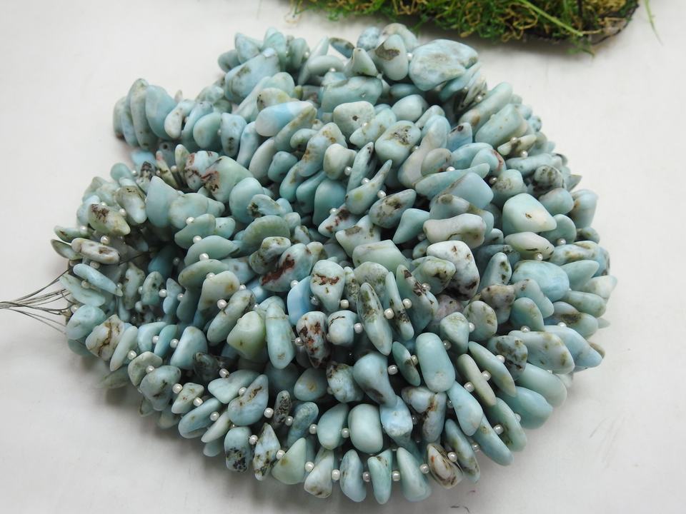 Larimar bleu brut mat poli en forme de copeaux irréguliers non taillés 16 pouces 10-15 mm environ certifié fournisseur en gros naturel