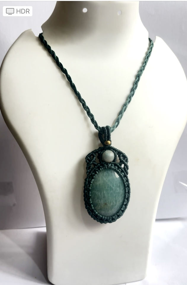 Nom du produit:Collier à pendentif pierre lisse en macramé Larimar