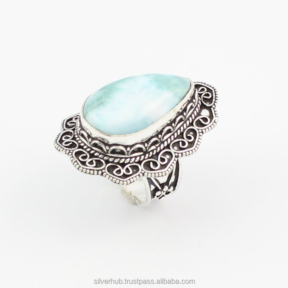 Bague de designer Larimar en argent Sterling 925 pour femme, anneau de déclaration, style Hippie, fait à la main, pierre précieuse naturelle
