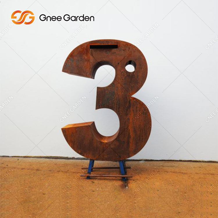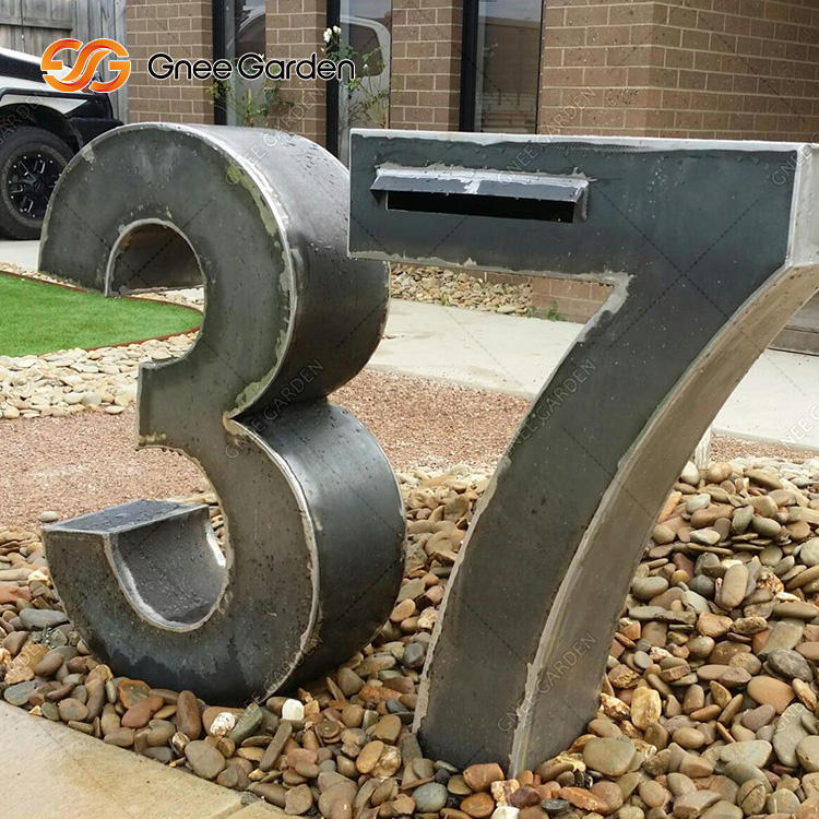 Boîte aux lettres de jardin en acier corten découpé au laser, effet rouillé, avec poteau pour usage extérieur