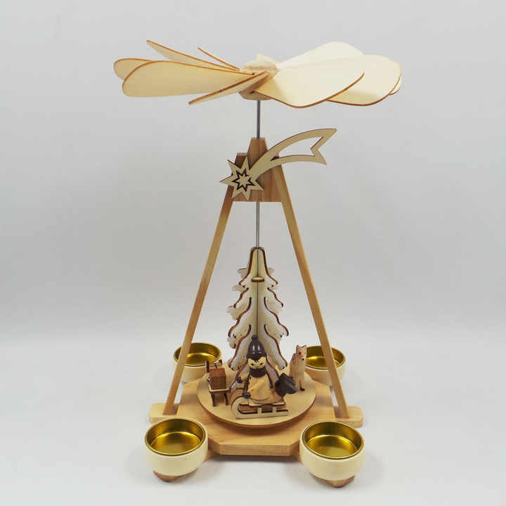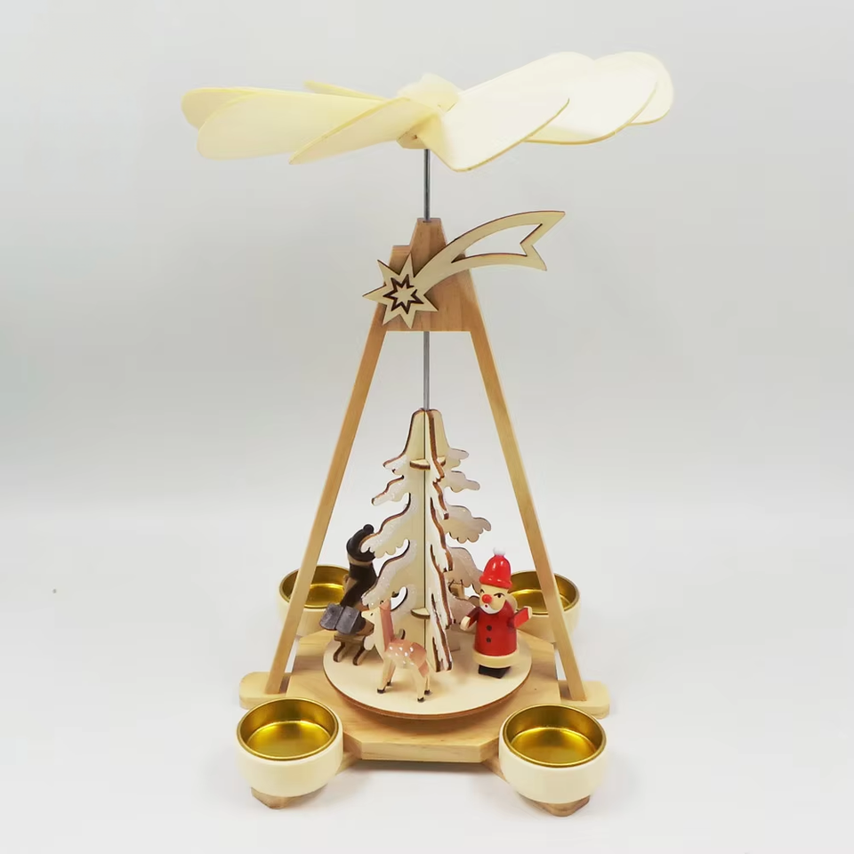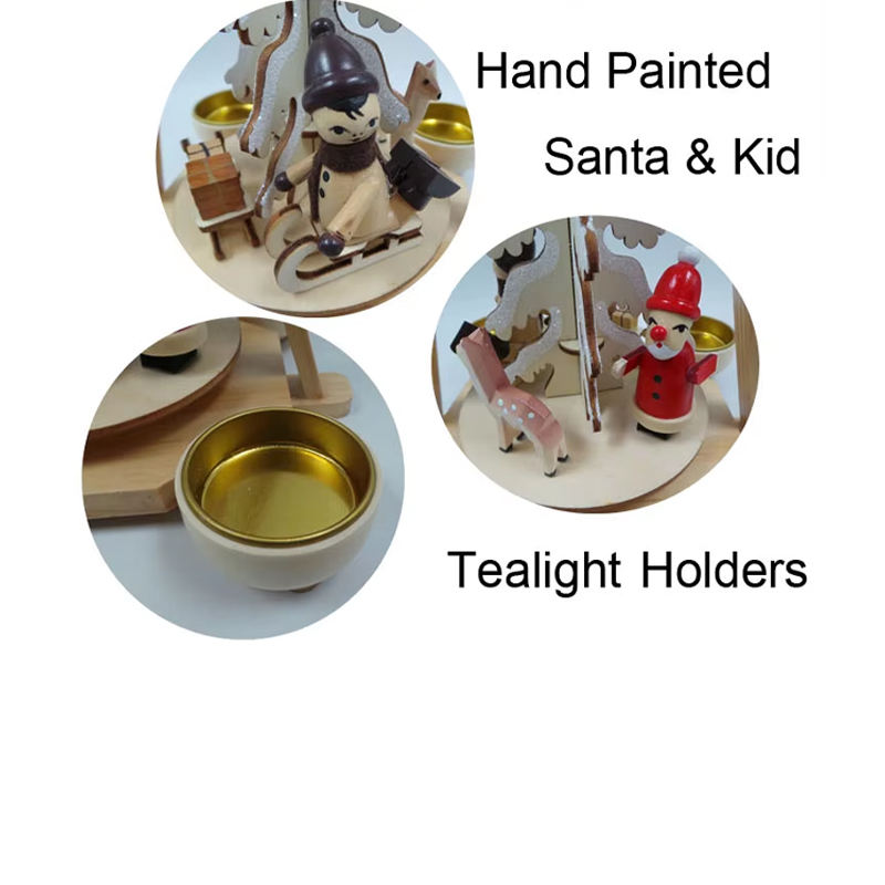 Pyramide de Noël rotative en bois écologique découpée au laser, couleur naturelle, avec traîneau, rennes et étoile filante