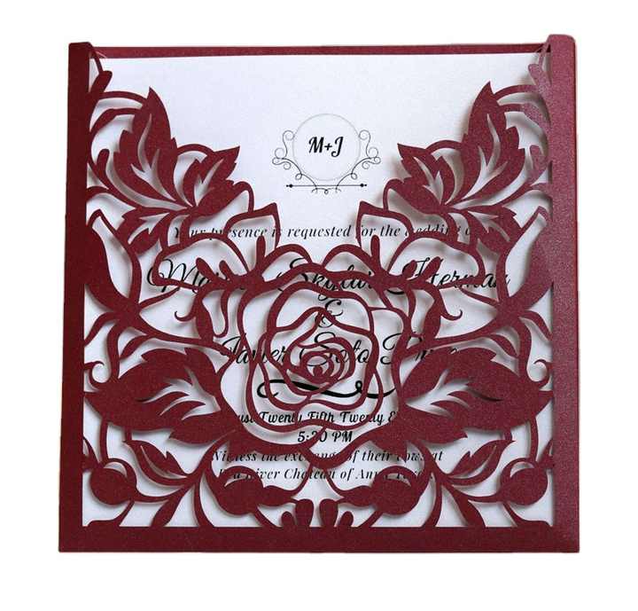 Mots-clés:Ser Carte de mariage d'invitation rouge coupée avec enveloppes