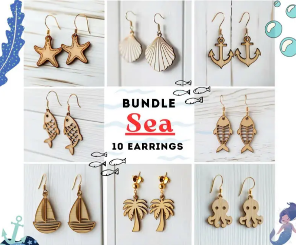 Ensemble de boucles d'oreilles océaniques en bois découpées au laser-Dessins délicats inspirés de la mer célébrant la nature et Wanderlust VIET FARGIMEX