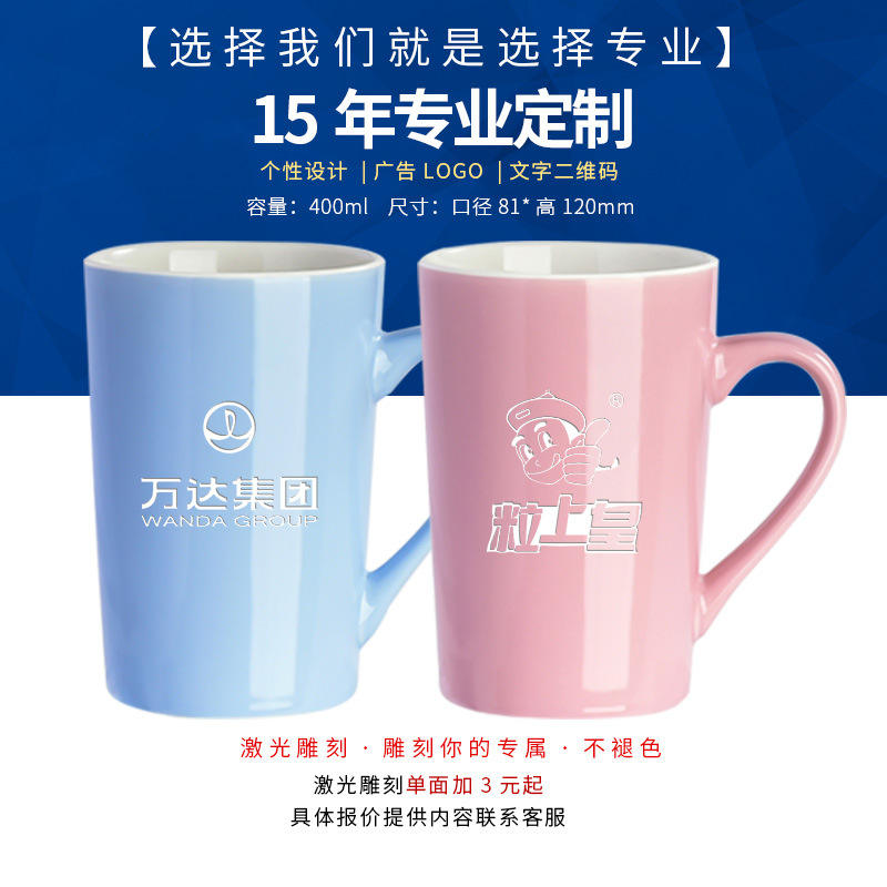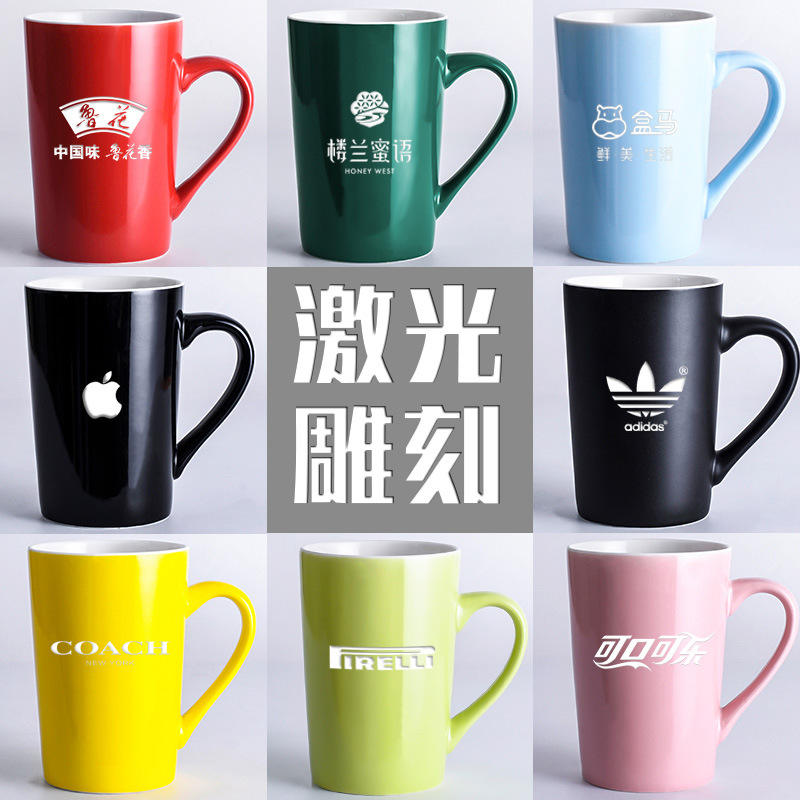 Mug en céramique gravé au laser, couleur unie, impression de logo personnalisé, vaisselle promotionnelle, tasse simple, forme droite