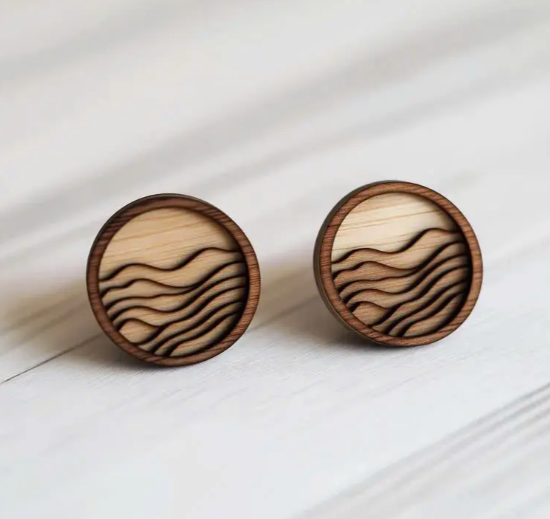 Boucle d'oreille en bois gravée au laser-Bijoux naturels rustiques légers VIET FARGIMEX