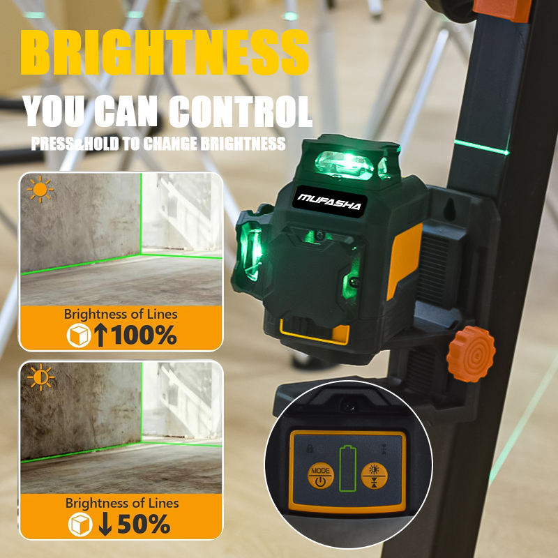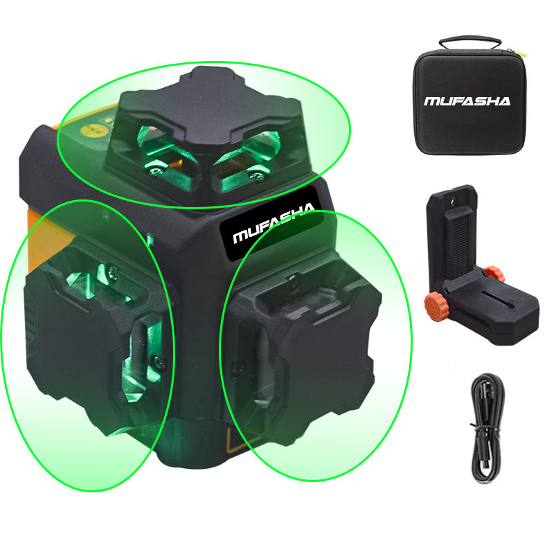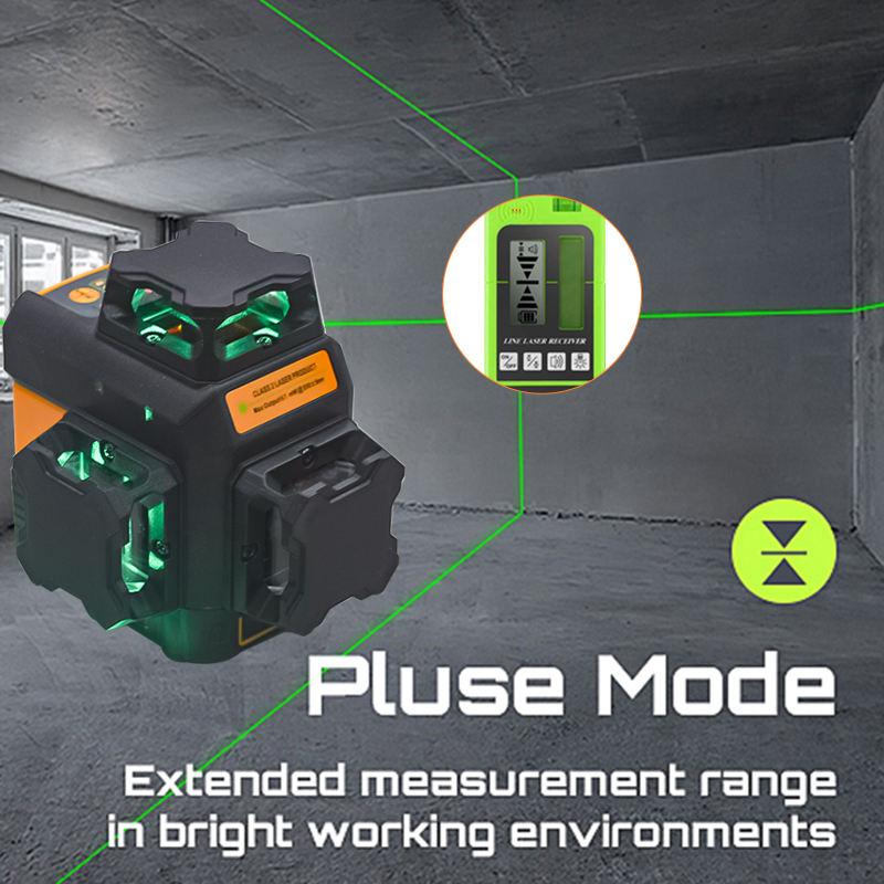 Niveau laser rechargeable à auto-nivellement, 12 lignes, faisceau laser vert, mode laser vertical et horizontal, mode pulsé pris en charge, NK-3D