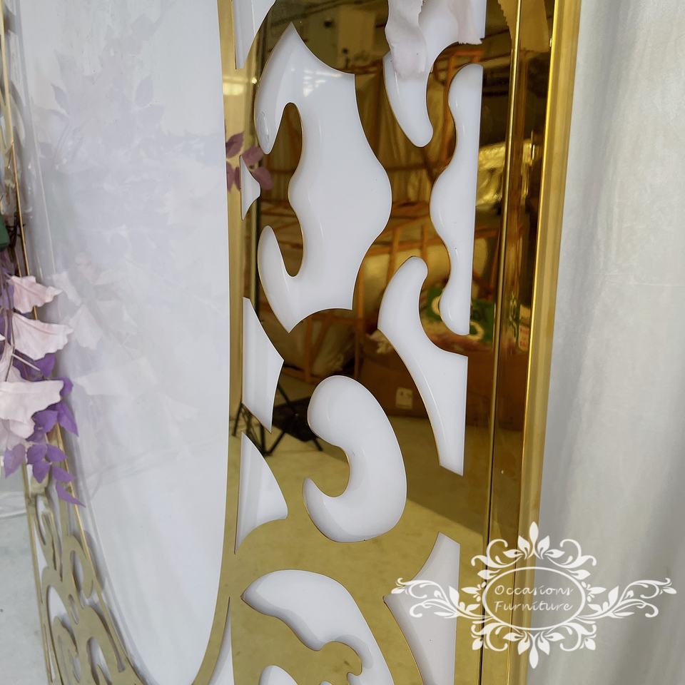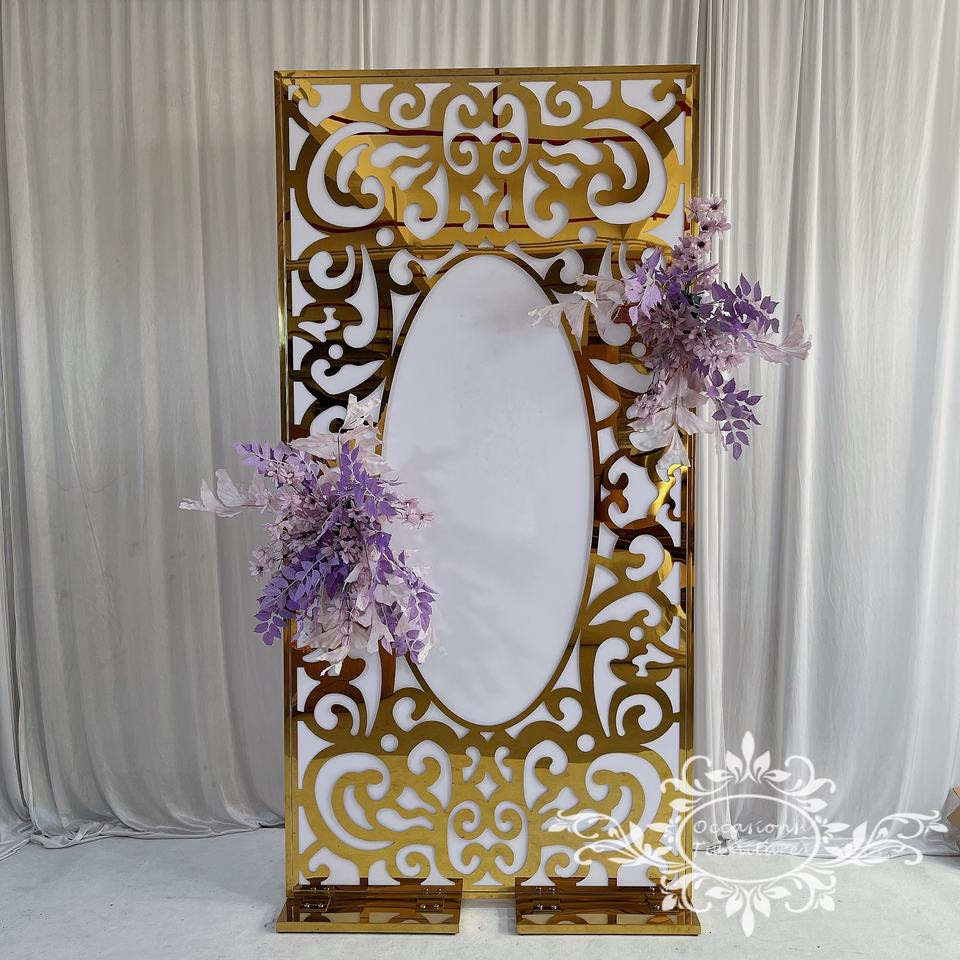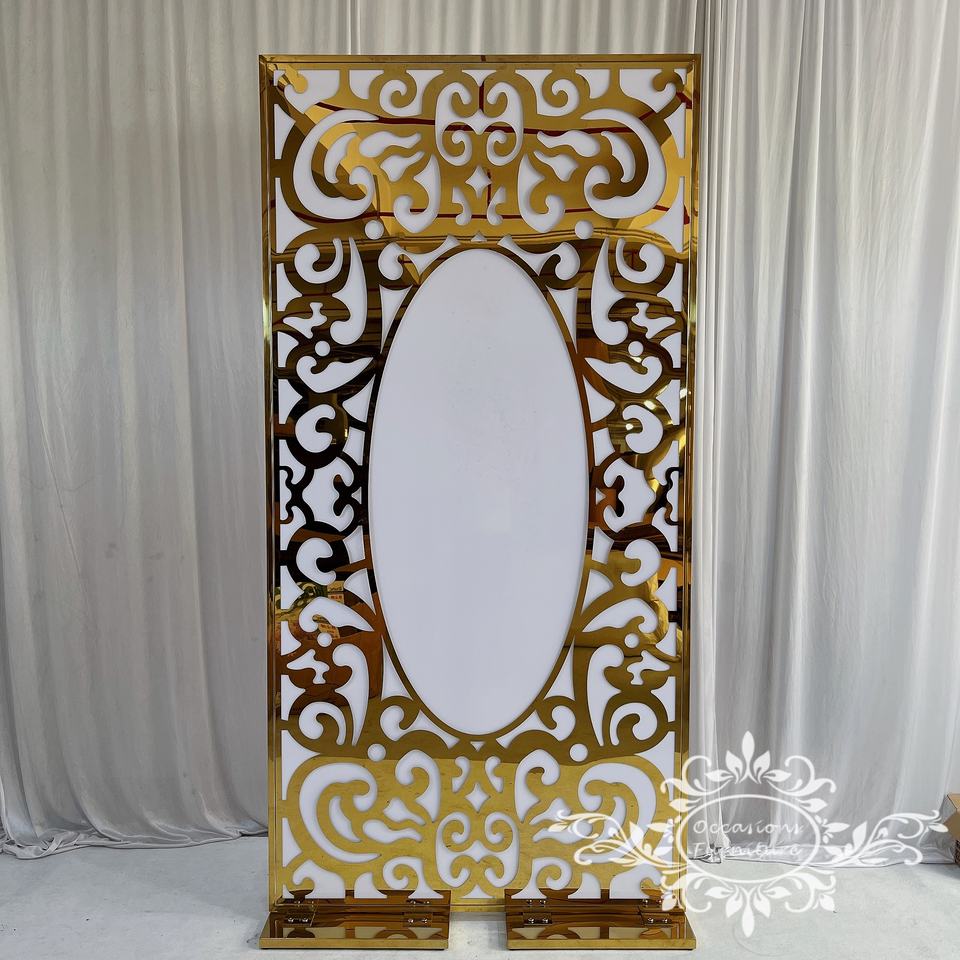 Panneaux décoratifs en acier inoxydable doré, design circulaire, découpe laser ovale, pour fond de scène de mariage, décoration d'événements, décoration murale