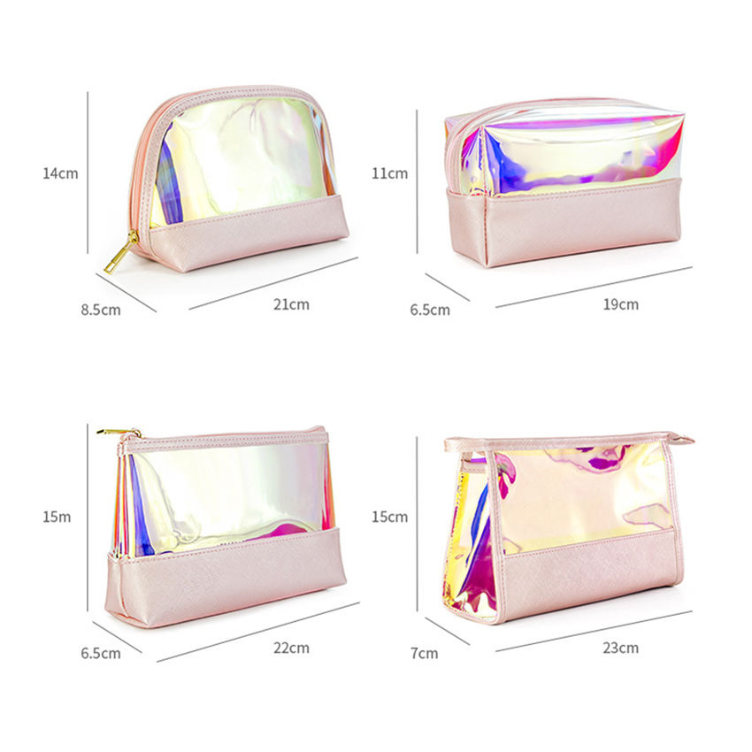 Sacs de voyage cosmétiques laser en TPU, pochette de maquillage pour sac à main, petite trousse de toilette portable rose laser avec fermeture éclair pour femmes