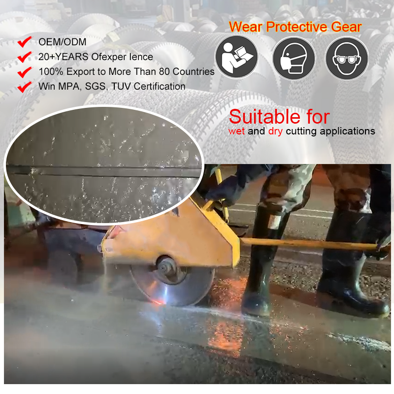 Application:Coupe de béton, béton armé, asphalte, etc.