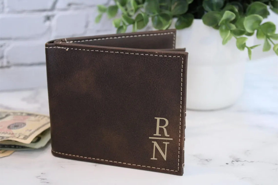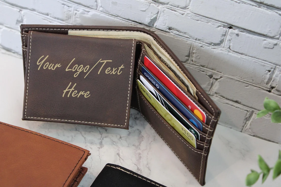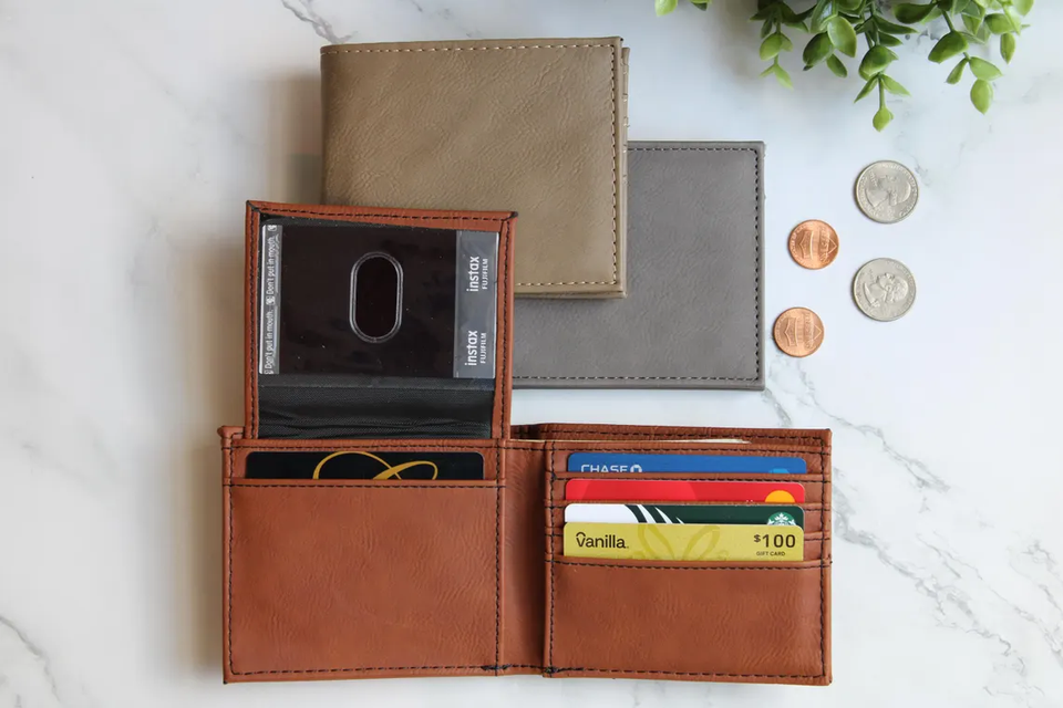 Portefeuille à rabat en cuir PU gravable au laser avec affichage d'identité, personnalisé pour homme, en cuir végétalien, gravé Mineti MLAW CN