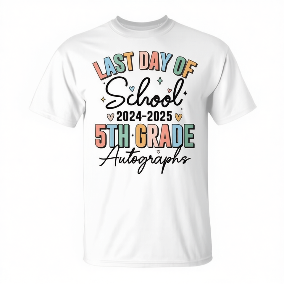 T-shirt avec autographe du dernier jour d'école pour garçons et filles de 5e année 2024-2025
