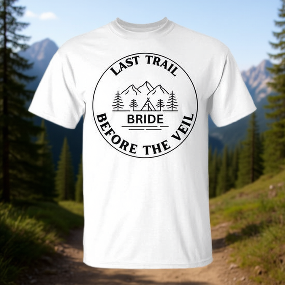 T-shirt de randonnée unisexe pour adulte à col rond et manches courtes, imprimé sérigraphié, motif 'Voile de Mariée Dernière Voie', idéal pour les cadeaux de mariage et les cadeaux pour la fête nuptiale