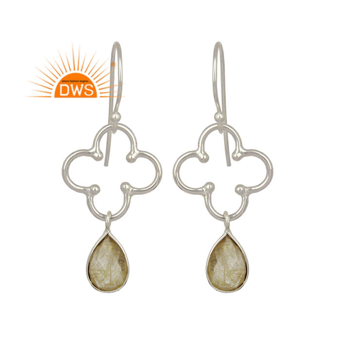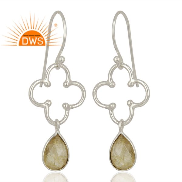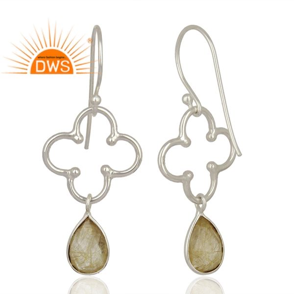 Boucles d'oreilles pendantes en argent sterling fin avec pierre précieuse naturelle rutile doré, fabricant de bijoux