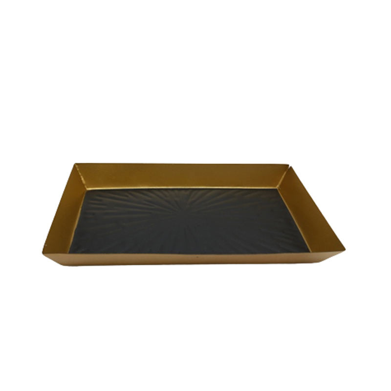 Dernier plateau de service rond en fer 2025 avec poignée, plat et assiette de couleur or et noir pour fournitures hôtelières