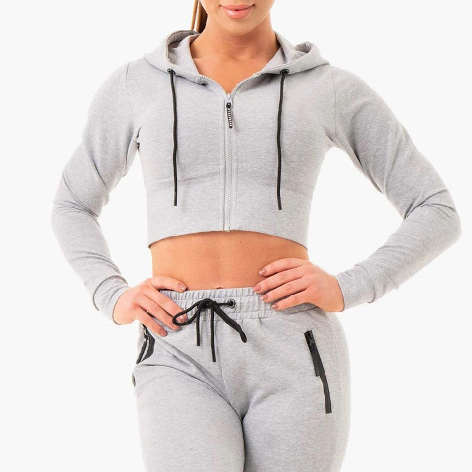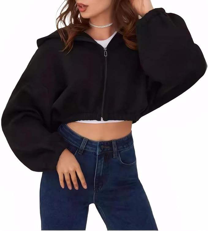Latest 2025 Spring Wholesale Women's Hooded Anti-Pilling Lined Drop-shoulder Zipper-Up Cropped Solid Color Long Sleeve Loose
