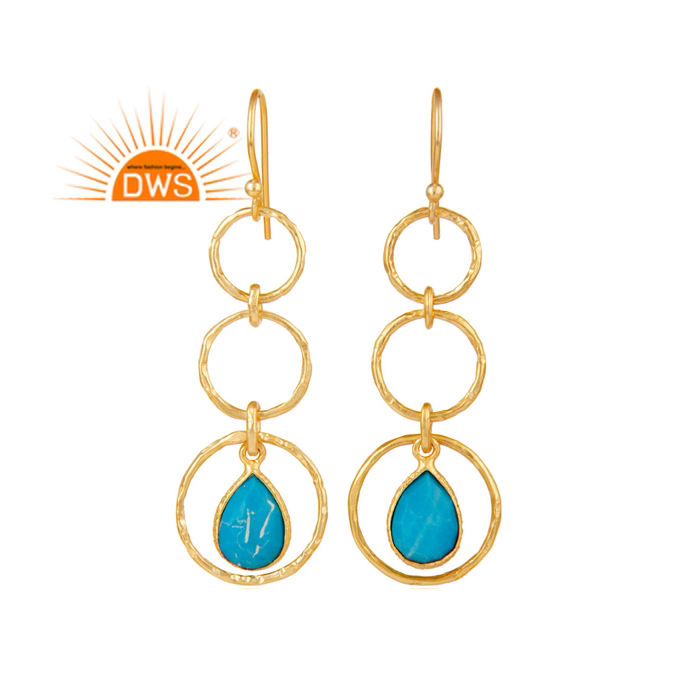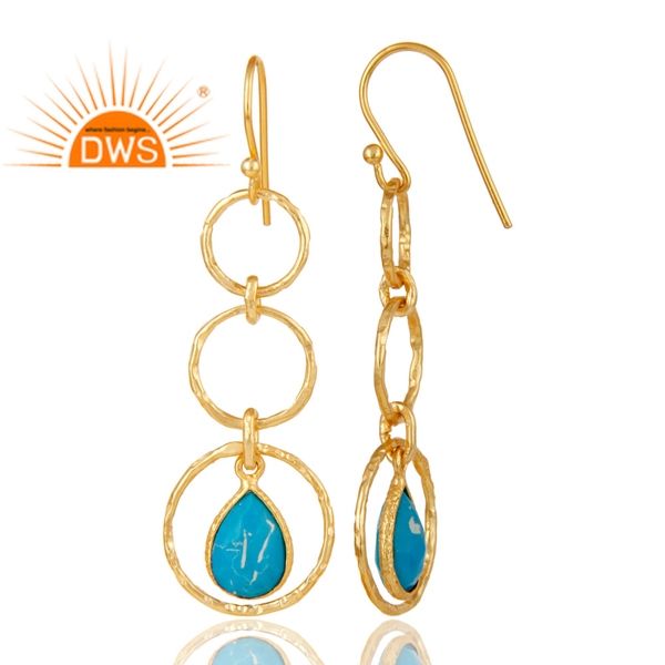 Nouveauté 2026 Boucles d'oreilles pendantes en argent sterling plaqué or avec pierre précieuse turquoise matricielle pour femme Fabricant de bijoux