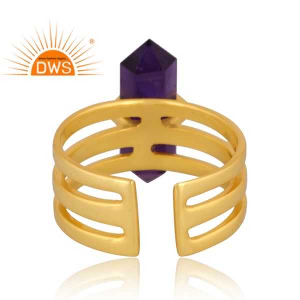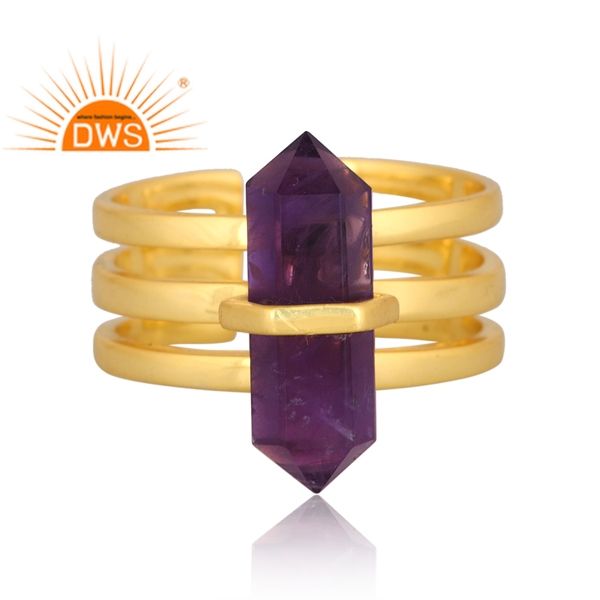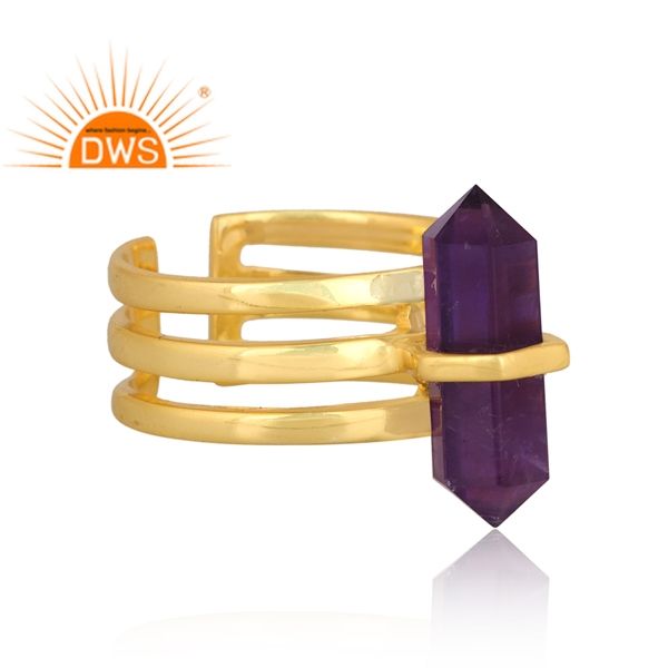 Nouvelle Bague Statement en Argent Sterling Plaqué Or avec Améthyste Naturelle Forme Crayon, Modèle 2026, Bijou de Mariage pour Femme Certifié