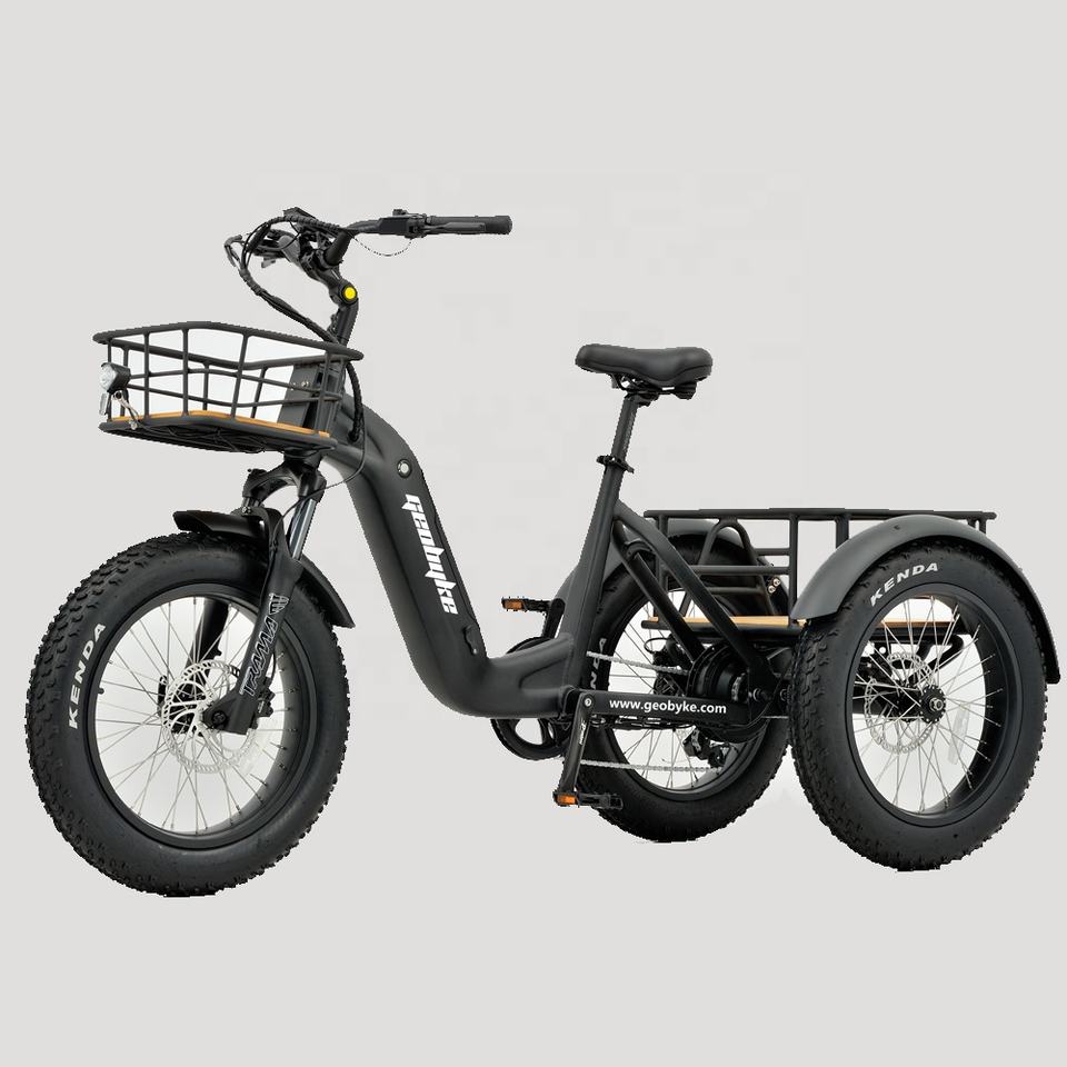 Vélo cargo électrique à 3 roues avec batterie au lithium de 48V, capacité de 15Ah, cadre en aluminium, système de freinage à disque, moteur de moyeu arrière