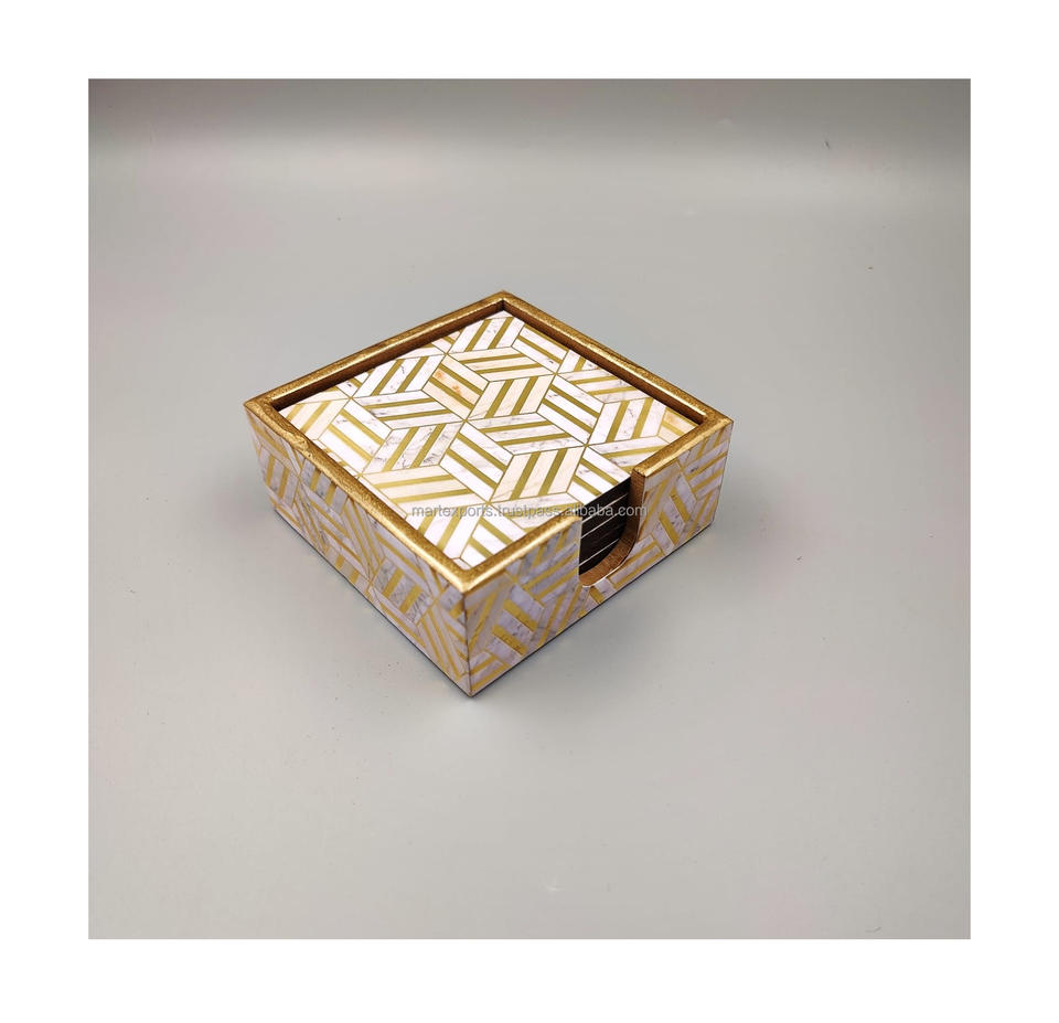 Dessous de verre carré en résine de bambou de conception antique Tapis de tasse en incrustation d'os classique Accessoires de décoration de table de haute qualité Prix de gros