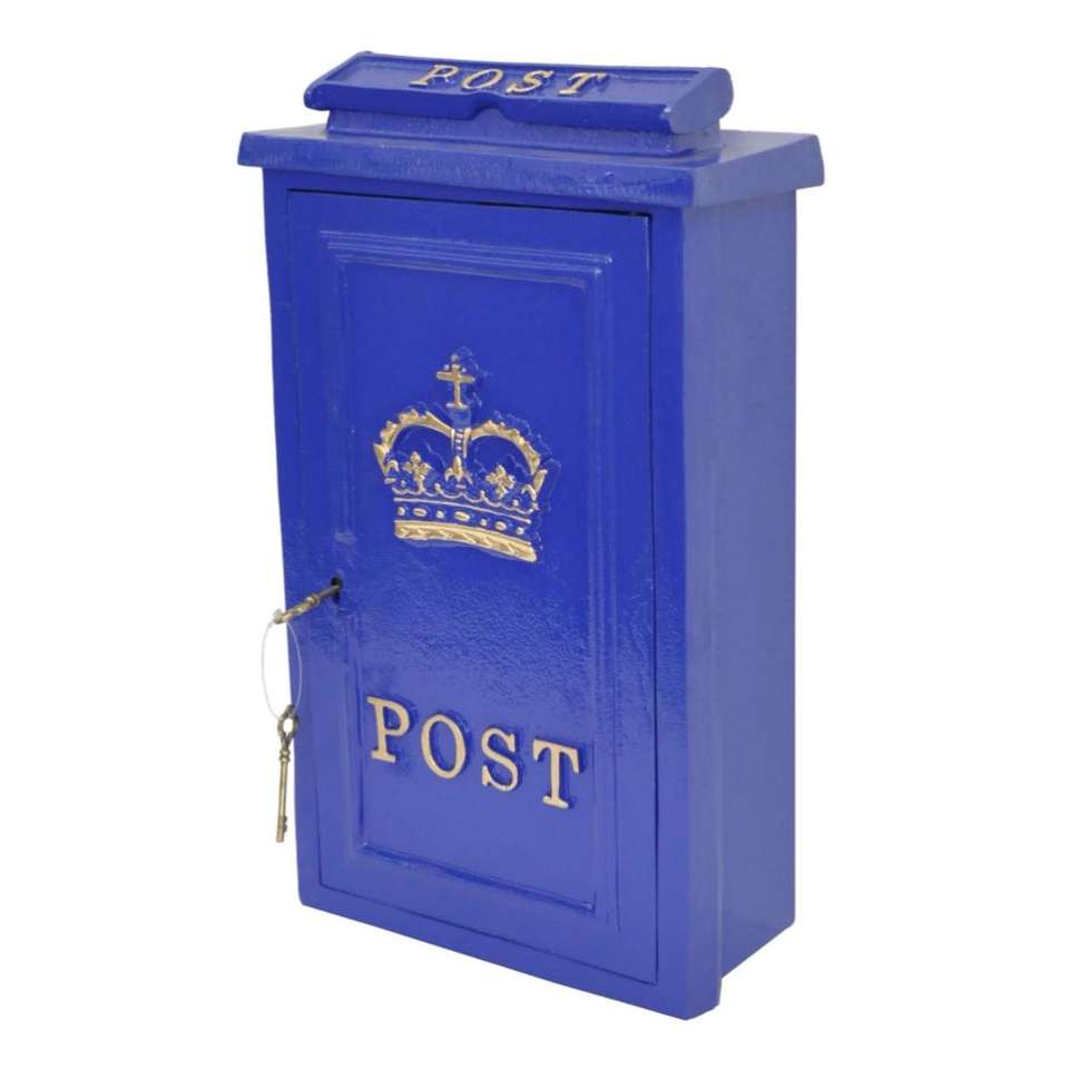 Nouvelle arrivée : Boîte aux lettres bleue personnalisée, faite à la main, pour décoration murale, avec serrure et clés de luxe.