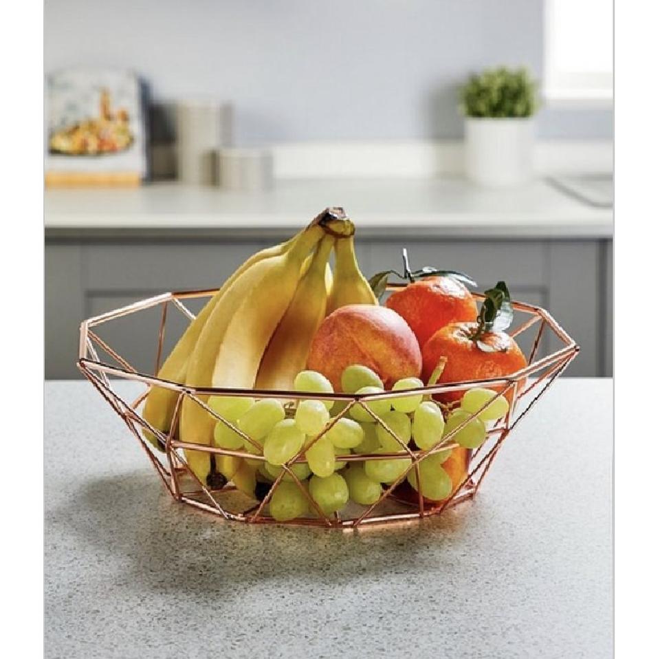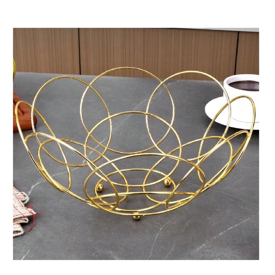 Nouveauté : Panier à fruits en fil de fer métallique, finition antique, couleur or rose, pour décoration de table.