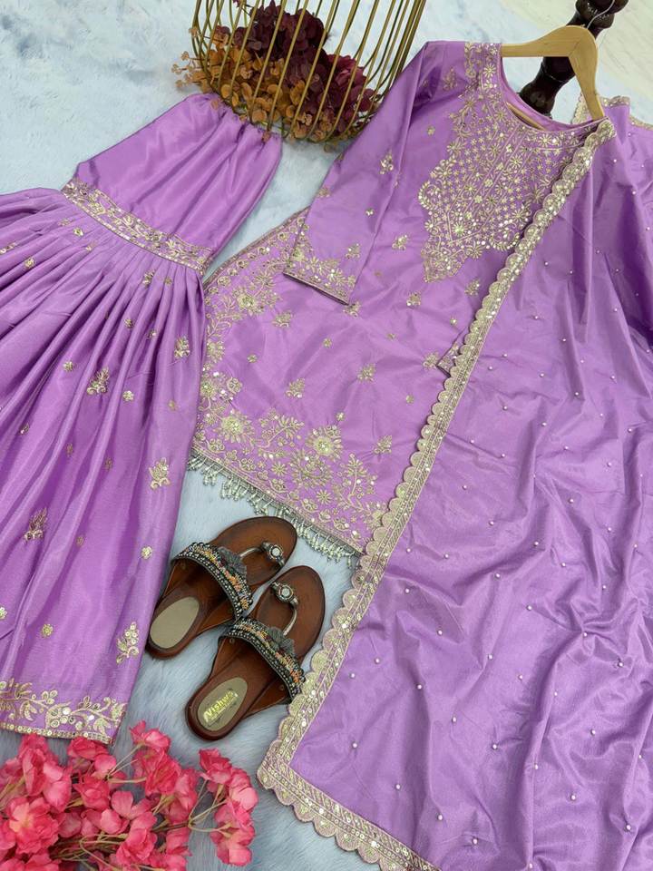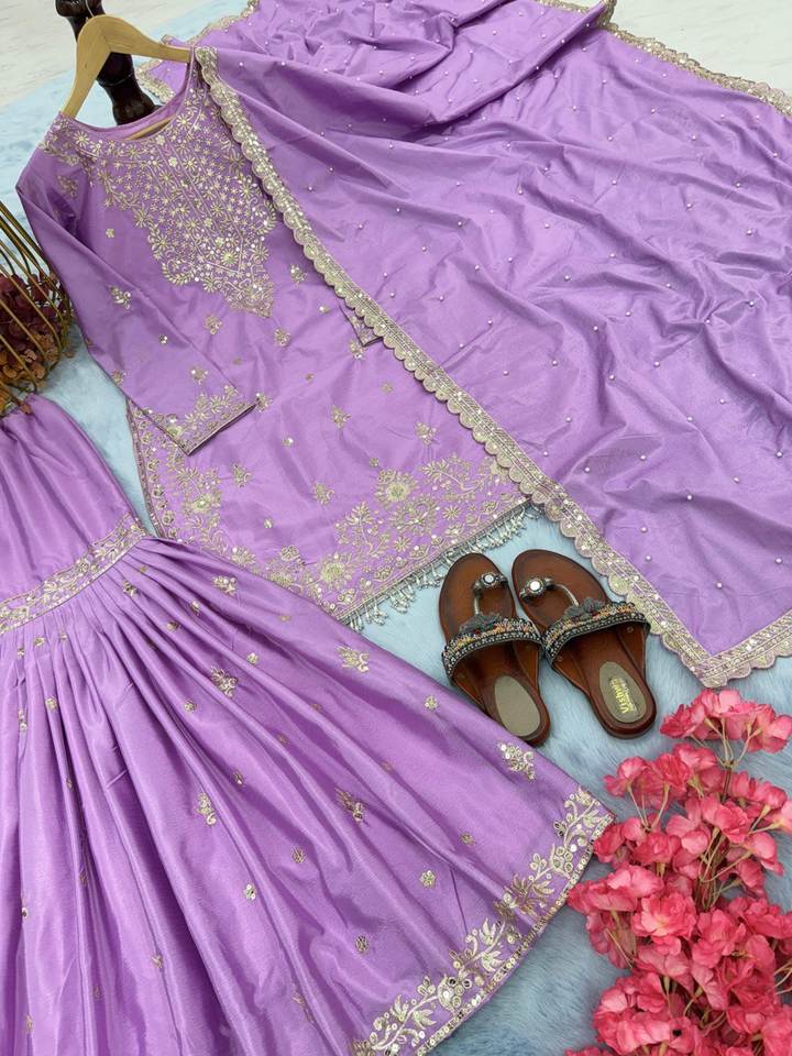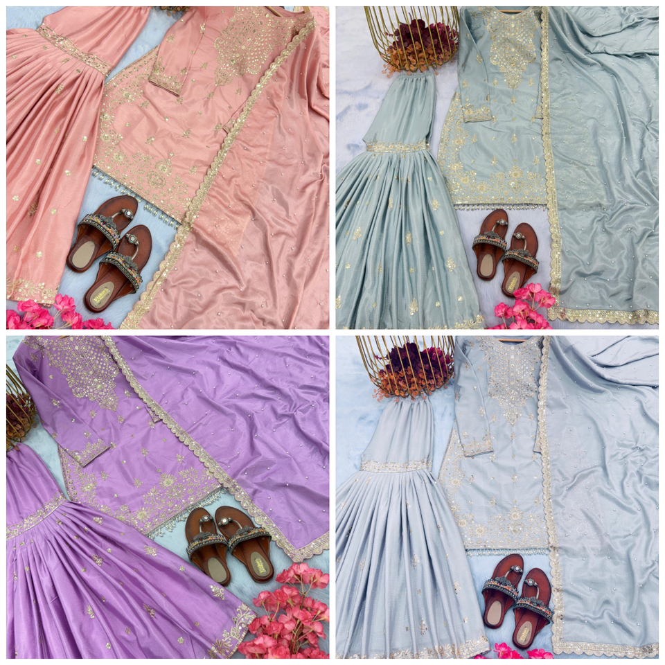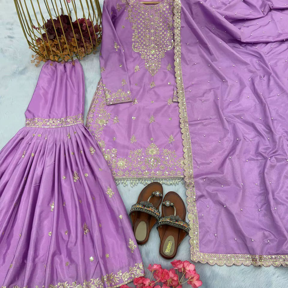 Nouvelle Collection Traditionnelle de Sharara de Luxe en Tissu Chinon avec Broderies et Paillettes pour Femmes, Idéale pour les Soirées