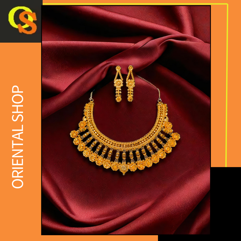Dernier arrivage de boucles d'oreilles collier en plaqué or 22 carats ensemble de boucles d'oreilles collier au design unique pour femmes bijoux